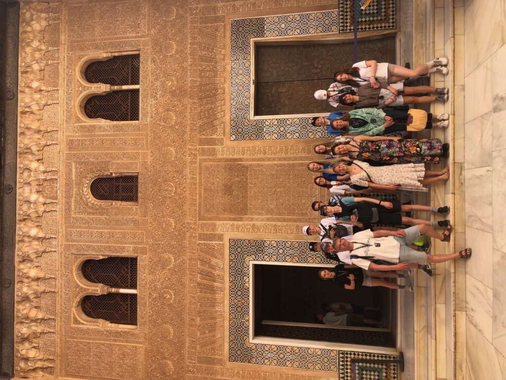 Thursday In the morning we took the bus to Granada. We arrived safely in Granada and divided into Czechs and Spaniards. After that the gentleman who led the tour took us over and we saw the Alhambra. The Alhambra was very beautiful. There were many beautiful gardens and buildings. My favorite thing was the lion fountain. I also liked that most of the tour was in the shade. After the tour there was a parting where I had lunch. After that we all got on the bus and went back to school. Honza